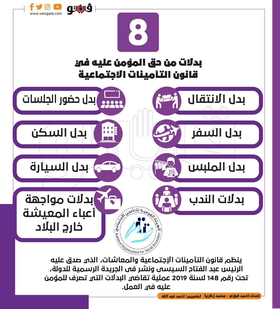 8 بدلات من حق المؤمن عليه في قانون التأمينات الاجتماعية | إنفوجراف الأربعاء 19/يناير/2022 - 06:00 م 1/19/2022 6:00:27 PM 8 بدلات من حق المؤمن عليه في قانون التأمينات الاجتماعية أحمد فوزى _ محمد زكريا شارك طباعة 18 حجم الخط شارك طباعة قانون التأمينات الاجتماعية المعاشات قانون التأمينات التامينات الاجتماعية قانون التامينات الاجتماعية والمعاشات التأمينات