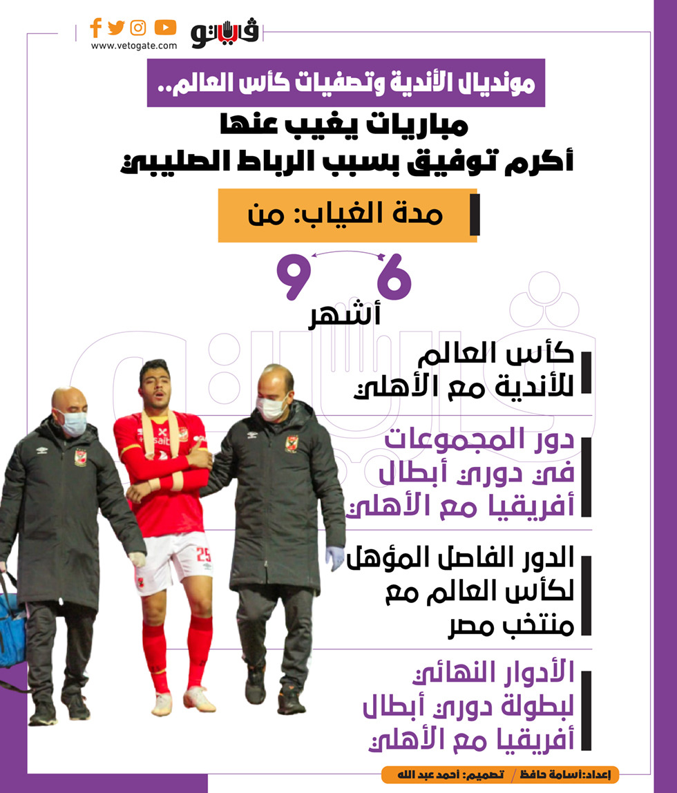 مونديال الأندية وتصفيات كأس العالم.. مباريات يغيب عنها أكرم توفيق بسبب الرباط الصليبي | انفوجراف الأربعاء 12/يناير/2022 - 09:18 م 1/12/2022 9:18:11 PM أكرم توفيق اسامة حافظ شارك طباعة 18 حجم الخط شارك طباعة دوري أبطال أفريقيا الأهلي أكرم توفيق ابطال أفريقيا مونديال الأندية