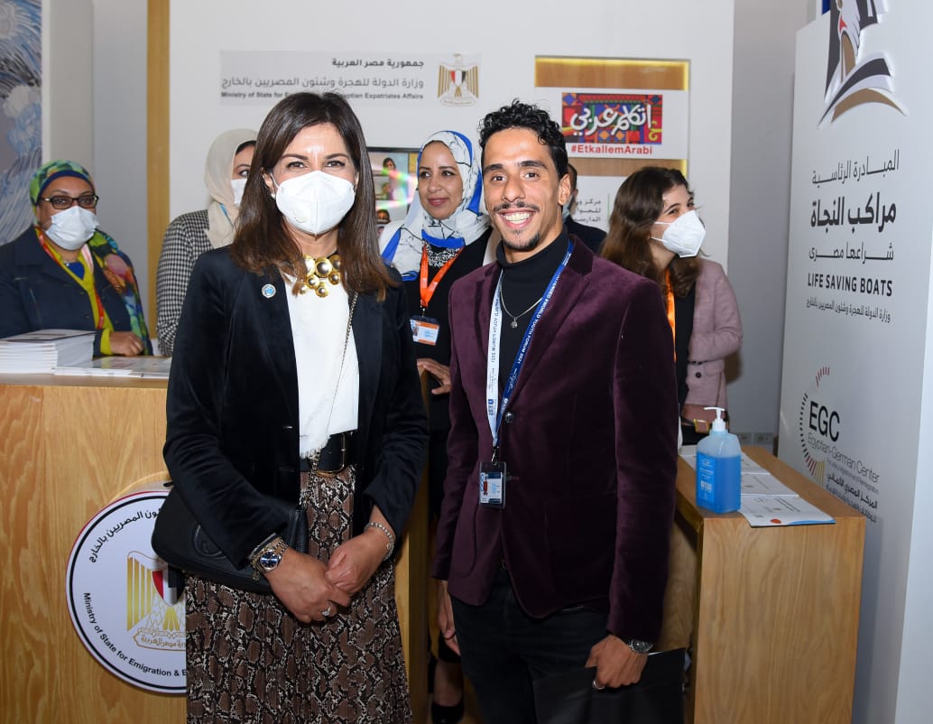 وزيرة الهجرة تستقبل عددا من المصريين بالخارج في جناح الوزارة بمنتدى شباب العالم