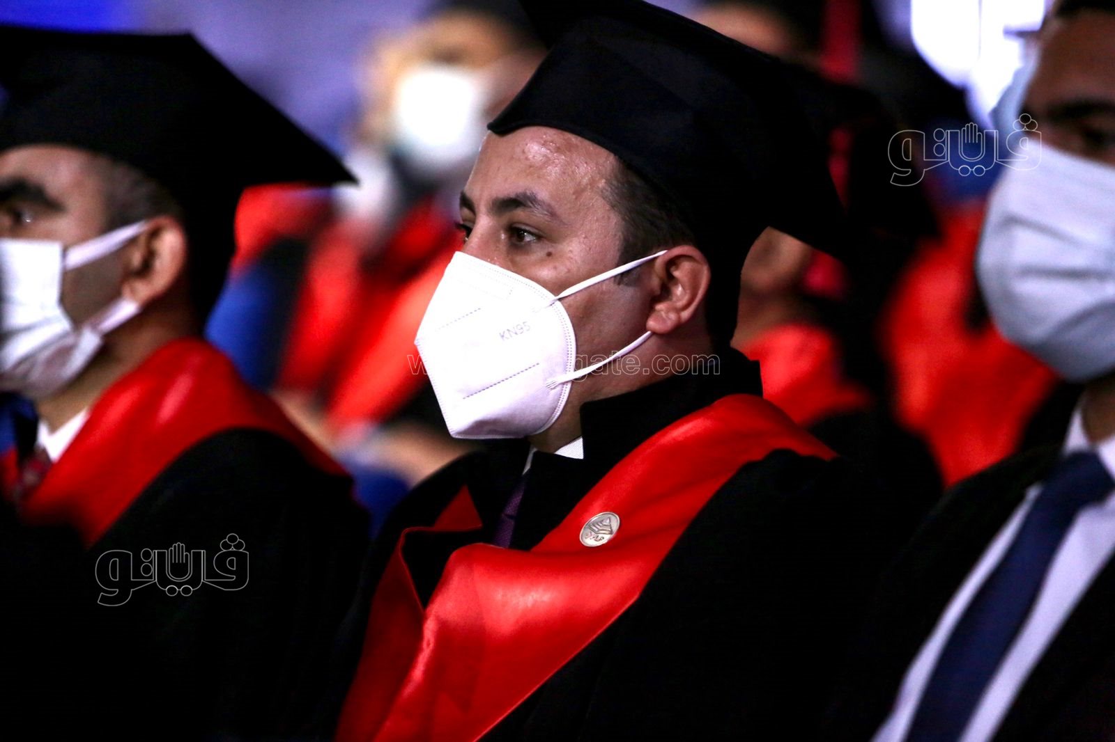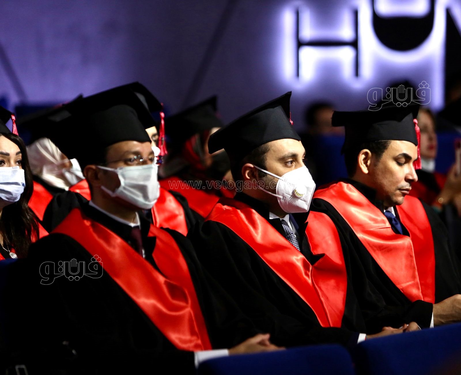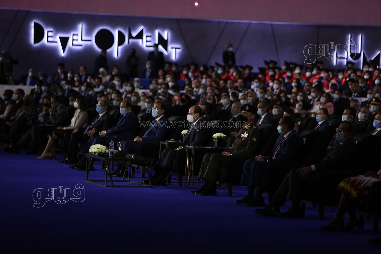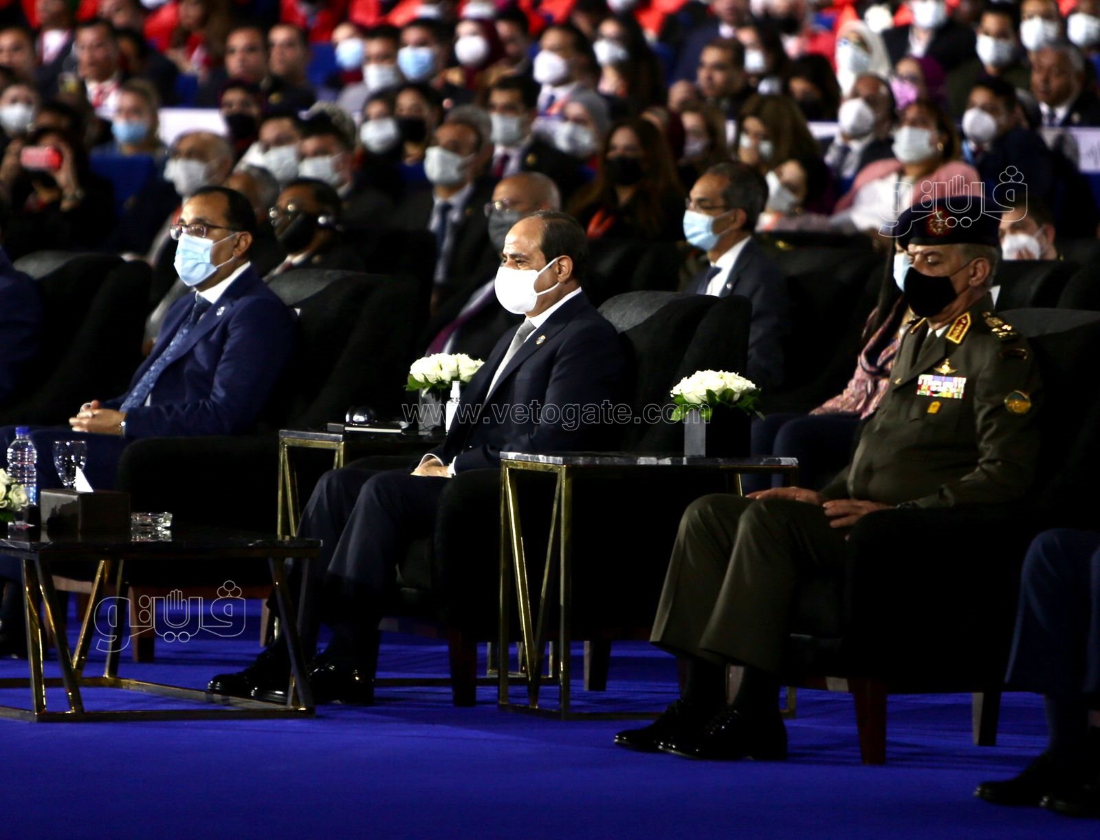 طالب الرئيس عبدالفتاح السيسي طلاب الأكاديمية الوطنية للتأهيل والتدريب، بخلع الكمامات أثناء التقاط صورة تذكارية لحظة تخرجهم في فعاليات اليوم الأخير لمنتدى شباب العالم في نسخته الرابعة قائلا: "أقولكم مبروك وممكن تشيلوا الماسك عشان دي هتكون صورة تذكارية مهمة".