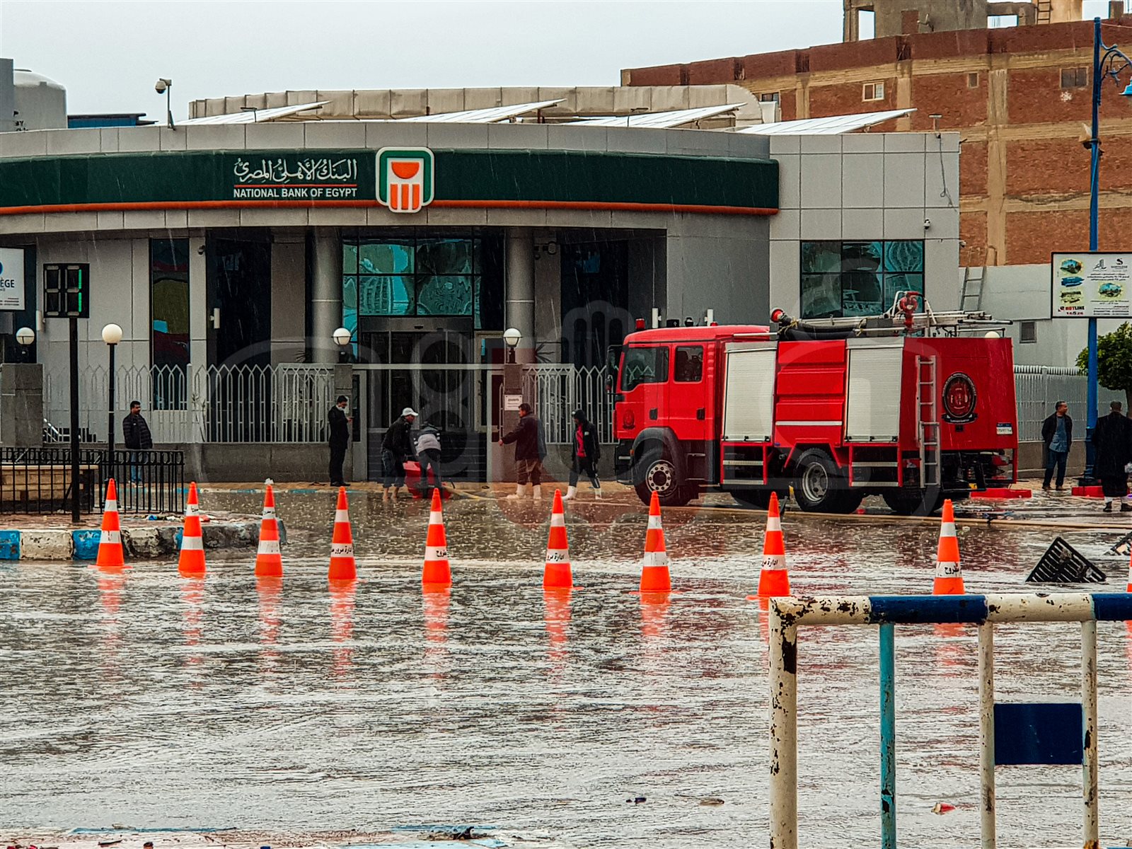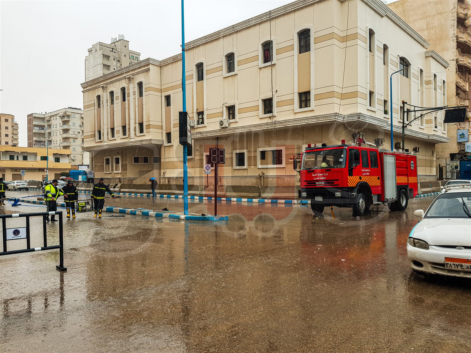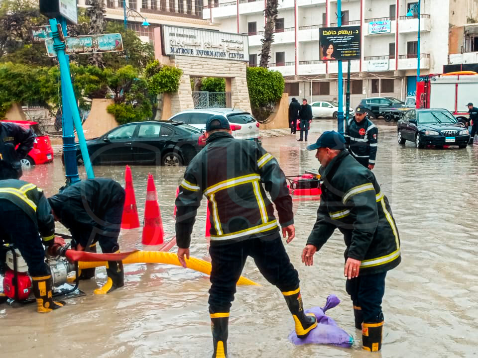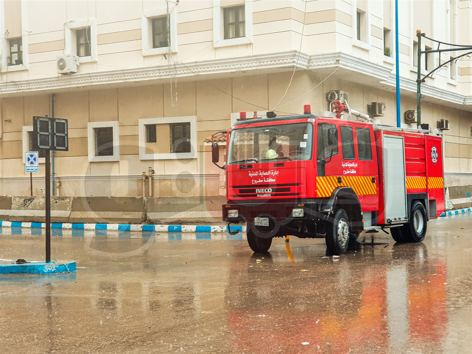 دفعت إدارة الحماية المدنية بمديرية أمن مطروح، بسيارتها في الميادين الهامة والشوارع الرئيسية للمشاركة في رفع تراكمات مياه الأمطار من الشوارع لتيسيير حركة المرور.
