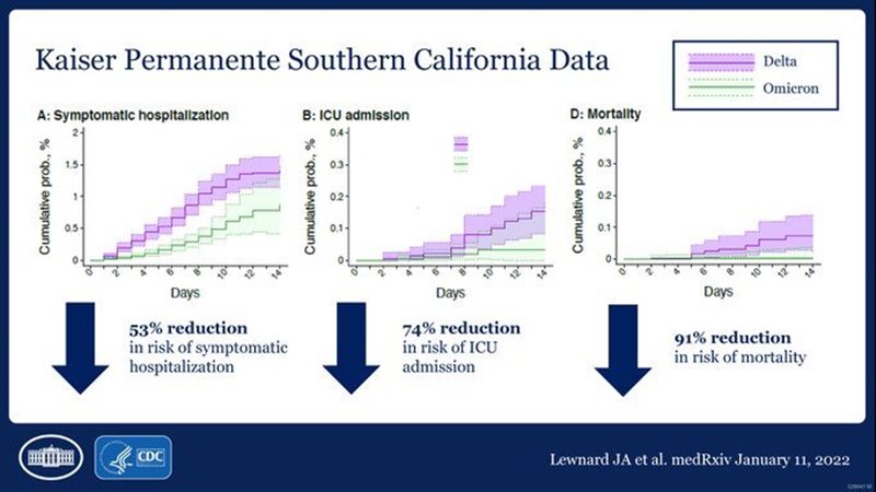 وقالت الدراسة التي أجريت في جنوب كاليفورنيا أن متحوّر أوميكرون أخف بكثير من دلتا، لكن السلطات الصحية الأمريكية تواصل الإصرار على التطعيم والمعززات بسبب المستشفيات المتوترة.