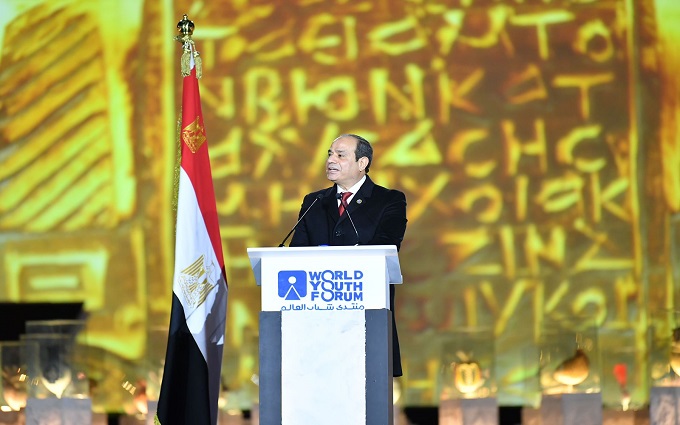 كما ألقى كلمة الرئيس السيسي خلال افتتاح فعاليات النسخة الرابعة من منتدى شباب العالم جاء نصها: