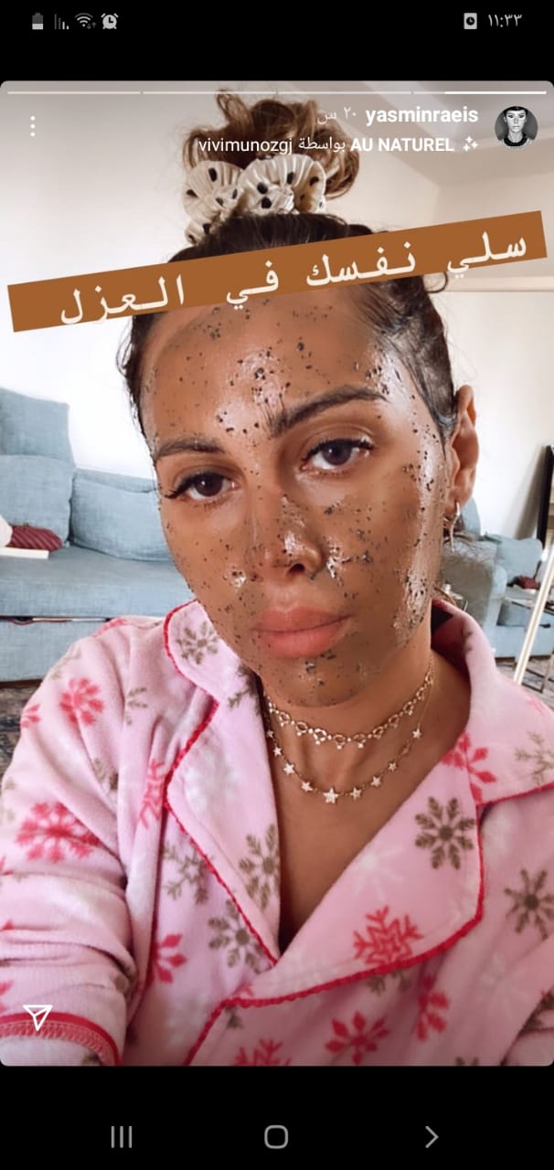 وعلقت ياسمين رئيس على الصورة التي نشرتها بستوري انستجرام الخاص بها: سلي نفسك في العزل
