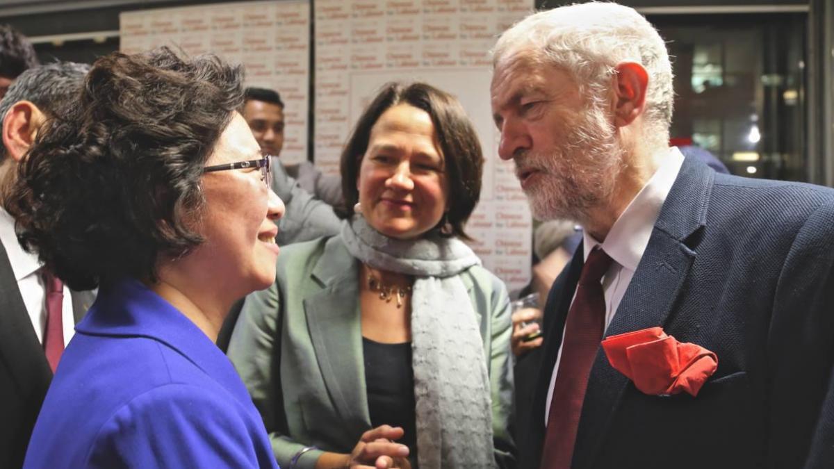 وتظهر لي في صورة مع ديفيد كاميرون، سلف ماي، خلال فعالية في 2015، وفي صورة أخرى مع زعيم حزب العمال جيريمي كوربن.
