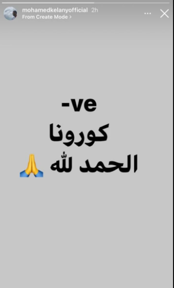 و كتب كيلاني عبر خاصية استوري على حسابه الرسمي على موقع تبادل الصور والفيديوهات انستجرام: سلبي كورونا.. الحمد لله.