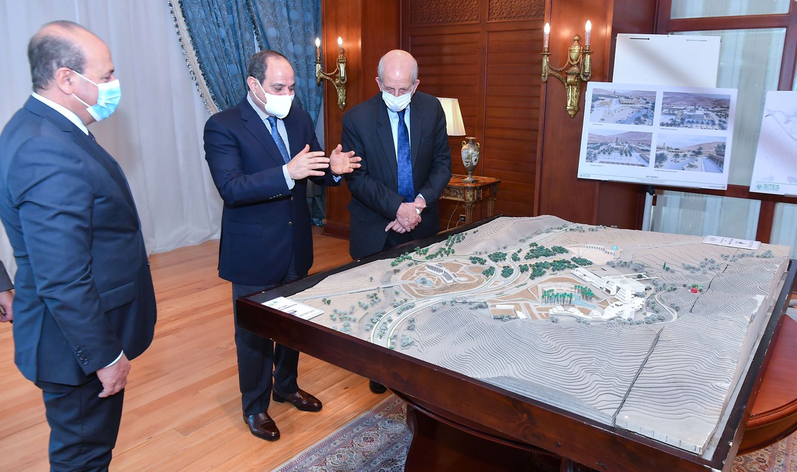 كما وجه الرئيس بتوفير كافة الخدمات لزوار هذا المكان المتفرد على مستوى العالم مع الحفاظ على الطابع البيئي والبصري للمكان، وكذلك مراعاة اعتبارات التنمية المستدامة من خلال دراسة الاعتماد على الطاقة النظيفة والمتجددة، إلى جانب الاهتمام بالزراعات والمسطحات الخضراء والتنسيق الحضاري.