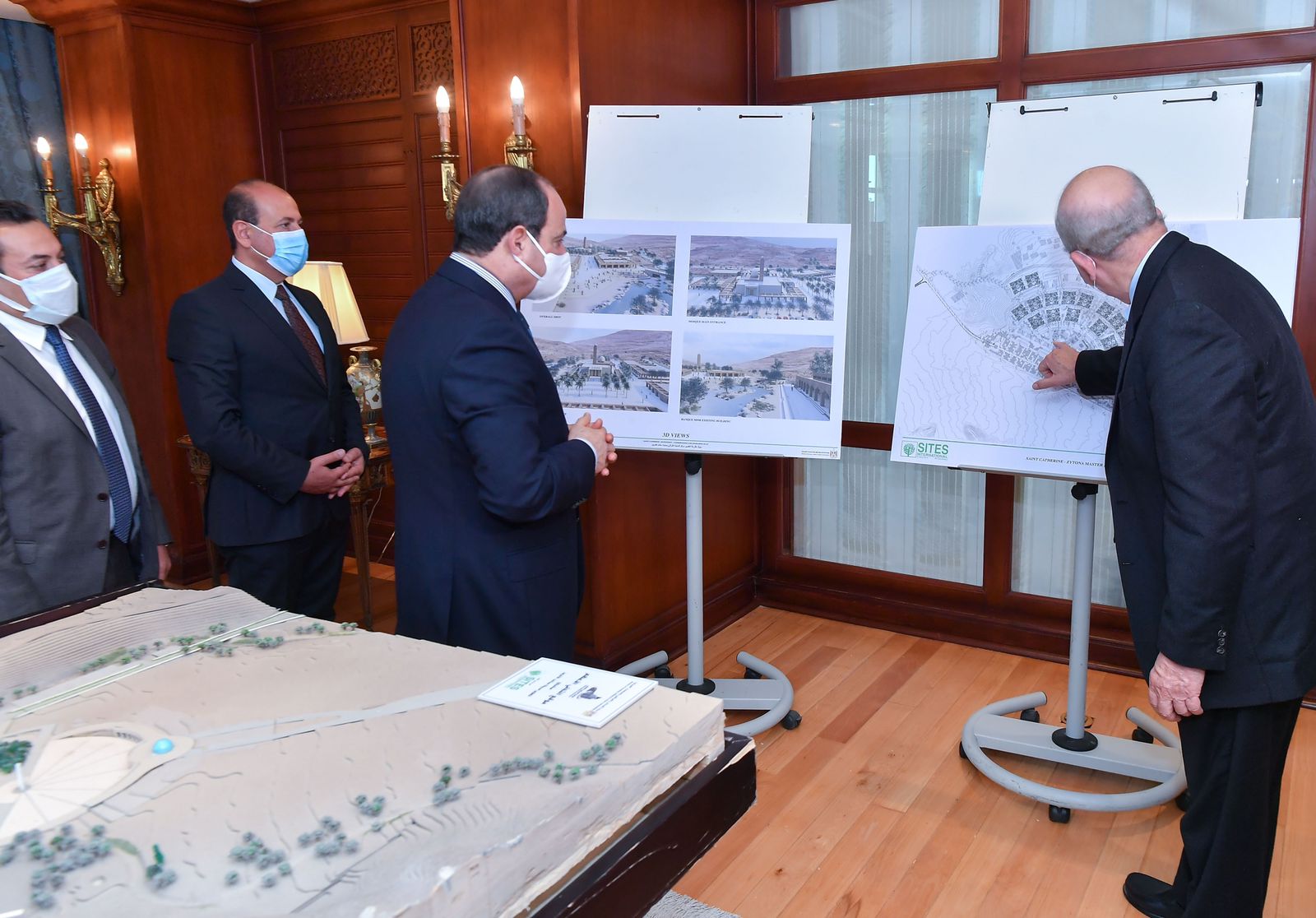 كما وجه الرئيس بتوفير كافة الخدمات لزوار هذا المكان المتفرد على مستوى العالم مع الحفاظ على الطابع البيئي والبصري للمكان، وكذلك مراعاة اعتبارات التنمية المستدامة من خلال دراسة الاعتماد على الطاقة النظيفة والمتجددة، إلى جانب الاهتمام بالزراعات والمسطحات الخضراء والتنسيق الحضاري.