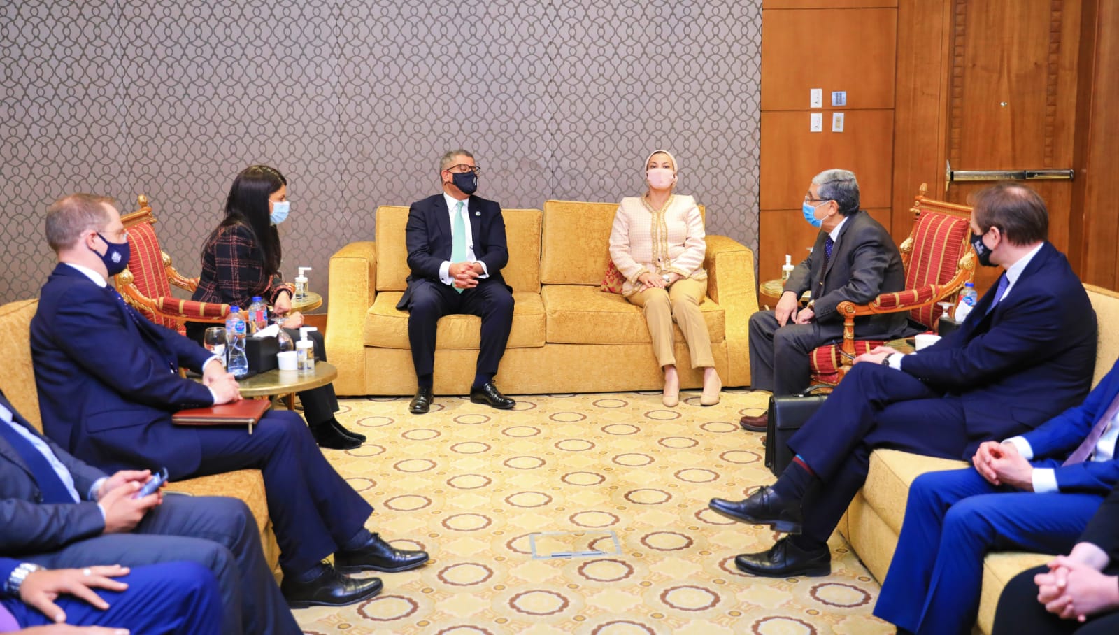 وقد رحبت وزيرة البيئة بمناقشة مبادرات القطاع الخاص الناتجة عن مؤتمر جلاسكو، وإمكانية دعم المبادرات ذات الأولوية خلال مؤتمر شرم الشيخ، كما أشارت إلى أهمية عرض قصص النجاح المصرية في مجال الطاقة المتجددة والشراكة مع القطاع الخاص فيها، وأيضا المشروعات المصرية في مجال تغير المناخ والتي تمت من خلال تمويل وطني ذاتي ولاقت حفاوة كبيرة عند عرضها في الجناح المصري في مؤتمر جلاسكو، حيث تم تنفيذ ٣٠ مشروع مصري لمواجهة آثار تغير المناخ في مجالات التكيف والتخفيف.