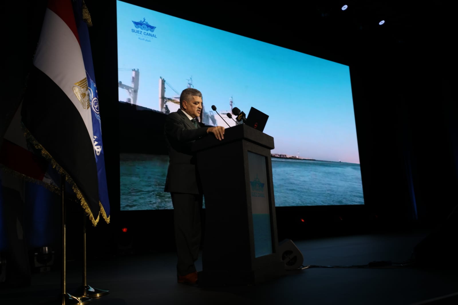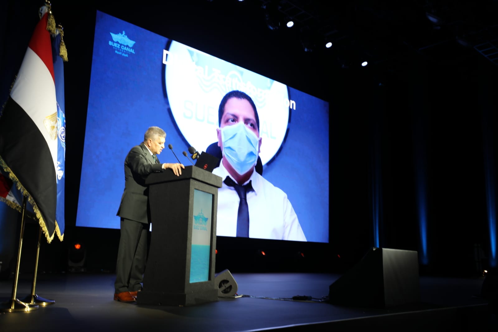 ثم تطرق إلى حادث جنوح سفينة الحاويات البنمية العملاقة EVER GIVEN باعتباره نموذج عملي على كيفية إدارة هيئة قناة السويس للأزمات وتجسيدٍ لقدرة الهيئة على تحويل التحديات إلى فرص حيث تمكن رجال الهيئة بمختلف تخصصاتهم من تعويم السفينة بأمان تام خلال 6 أيام فقط على الرغم من توقعات الخبراء في قطاع النقل البحري والإنقاذ العالمي بأن عملية التعويم قد تستغرق أسابيع أو شهور وهو الأمر الذي حظى باهتمام بالغ من العالم أجمع وبدأت تداعياته تظهر ليس فقط في حركة السفن والتجارة الدولية بل وفي الموانئ والمناطق الاقتصادية فضلًا عن التداعيات العسكرية والأمنية في مختلف بقاع العالم.