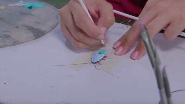 فلبينية تبدع في الرسم على ظهر صراصير ميتة |صور
