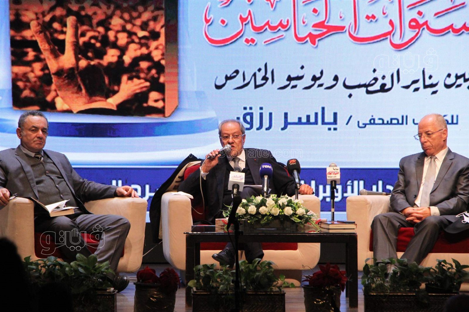 انطلق منذ قليل حفل توقيع كتاب "سنوات الخماسين.. بين يناير الغضب ويونيو الخلاص"، للكاتب الصحفي الكبير ياسر رزق، الرئيس السابق لمجلس إدارة أخبار اليوم، الذي يعقد بدار الأوبرا المصرية.