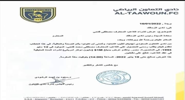 وكان الزمالك وافق على انتقال مصطفى فتحي إلى التعاون السعودي نظير مليون دولار، لينضم اللاعب إلى التعاون لمدة 3 سنوات.