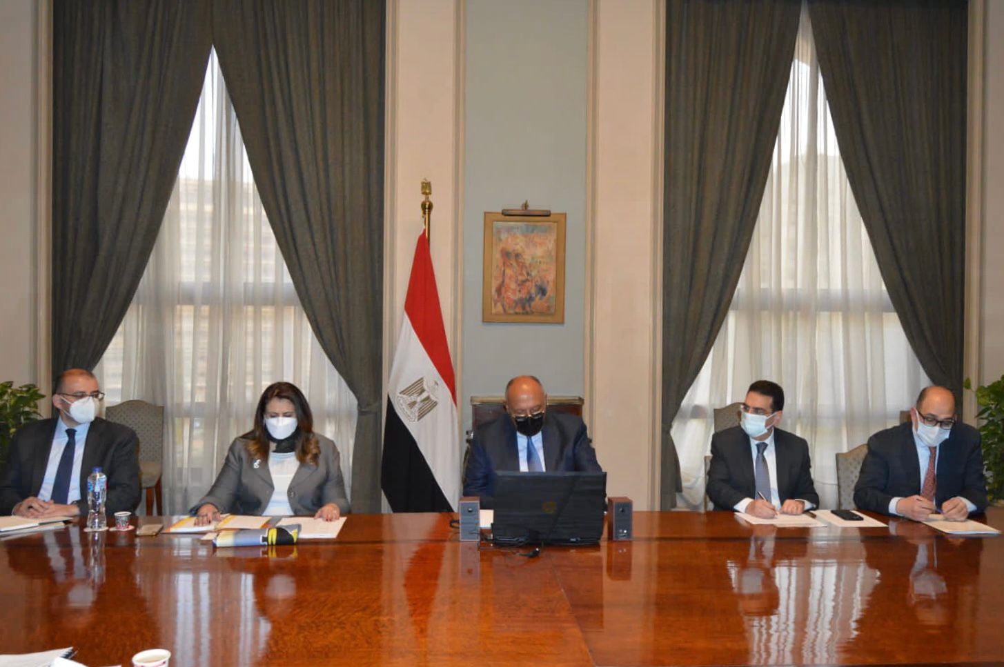 شارك وزير الخارجية سامح شكري، اليوم الإثنين 17 يناير 2021، في الاجتماع الوزاري التشاوري بين مجلس السلم والأمن الإفريقي والدول الأفريقية الثلاث أعضاء مجلس الأمن بالأمم المتحدة، وذلك عبر خاصية الفيديوكونفرانس.