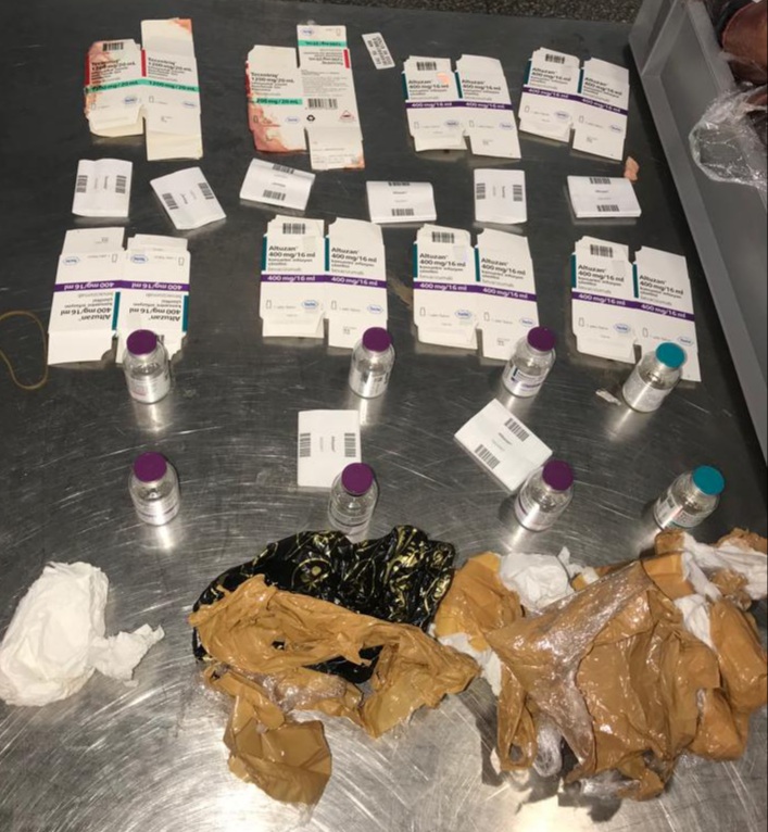 كما تم ضبط راكب قادم من جدة، بحوزته ٥١ عبوة دوائية يقترب ثمن الواحدة من ٤٠٠٠ جنيه وعبوتين يتجاوز سعر الواحدة ٣٠٠٠ يورو، بين طيات ملابسه داخل الحقائب.