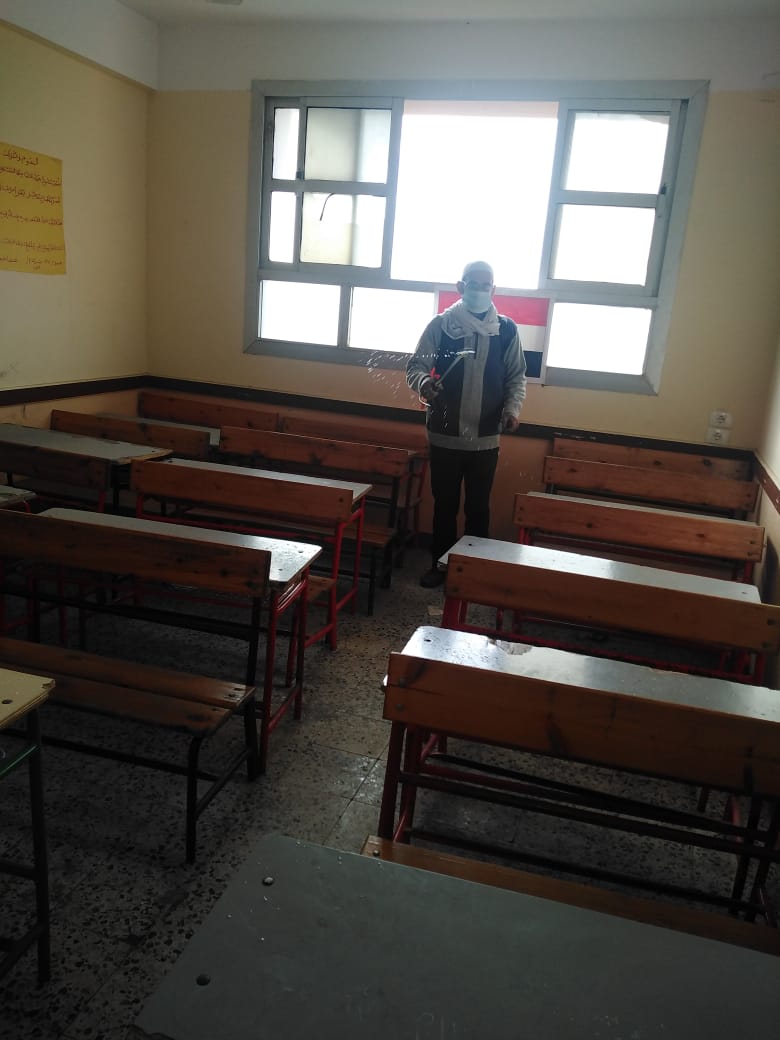 جاء ذلك استعدادًا لامتحانات النقل والشهادة المحلية للنصف الأول من العام الدراسي 2021 / 2022، تتم يوميًا عملية التطهير والتعقيم قبل وعقب انت وتشمل عمليات التطهير، جميع مرافق المدارس، من معامل ومكتبات، وفصول دراسية، وطرقات، وحمامات وغيرها، بالإضافة إلى توفير المطهرات والصابون السائل بالحمامات، واستخدام كواشف الحرارة لجميع الطلاب والعاملين عند الدخول لجميع اللجان.