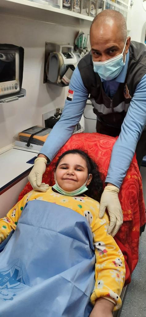 وعلى الفور تم نقل الطفلة رودينا وجدها بواسطة سيارة إسعاف مجهزة المستشفي معهد ناصر لإجراء الفحوصات الطبية اللازمة، واتخاذ الإجراءات الطبية لعلاج الطفلة وجدها.