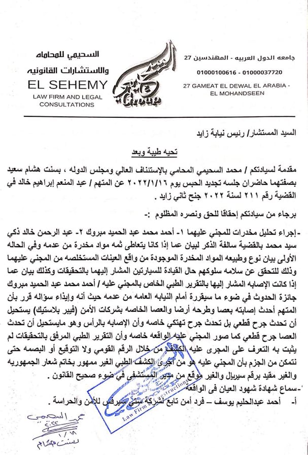 وتقدم دفاع شدوى الحضري ابنة اللاعب عصام الحضري، بتصالح مع فرد الأمن المتهم بإتلاف سيارتها في كومباوند بالشيخ زايد، وذلك خلال نظر استئناف المتهم على أمر تجديد حبسه 15 يومًا.