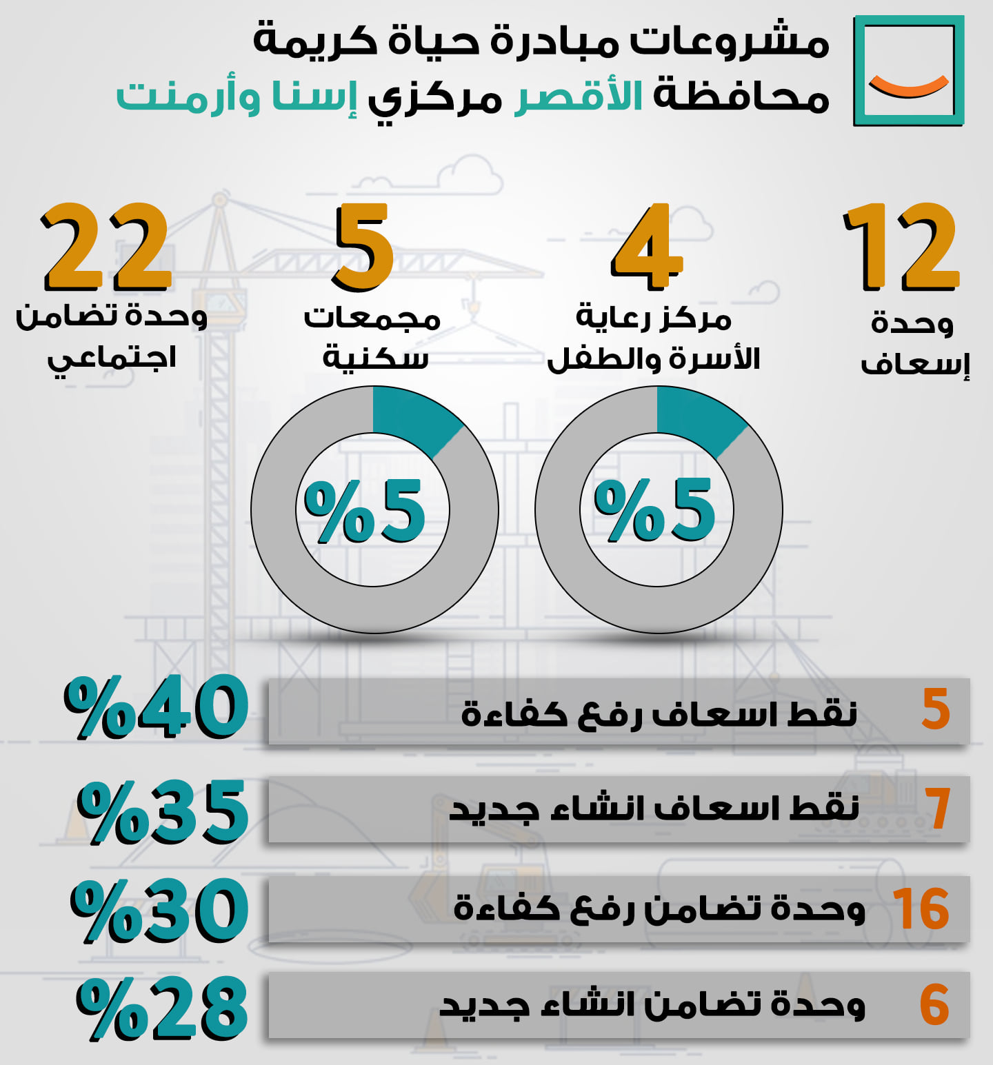 - تنفيذ بعض مشروعات مبادرة حياة كريمة بمحافظة الأقصر مركزي إسنا وأرمنت.