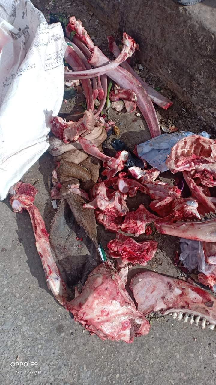 وتداول رواد التواصل الاجتماعي صور بقايا عظام الحمار بعد إخراجه من كيس بجانب اكوام القمامة بميدان السادات بوسط مدينة العريش وأكد مصدر أمني أنه جار التحقيق والتحقق من الكاميرات الموجوده على المحال التجارية للتعرف على من القى بقايا العظام.