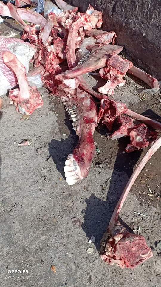 وتلقت الأجهزة الأمنية بمديرية أمن شمال سيناء بلاغ يفيد بالعثور على بقايا لعظام تشبه عظام حمار ملقاه بجانب أكوام القمامة بميدان السادات بوسط مدينة العريش وتم إبلاغ مديرية التموين ومديرية الطب البيطري للتحفظ على العظام لحين التحقيق.