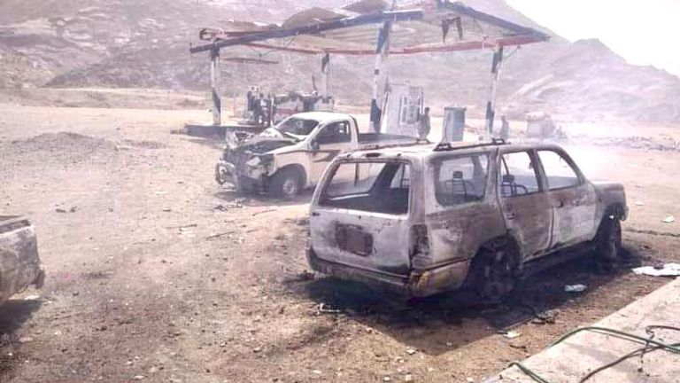 كما احترقت نحو 4 مركبات مدنية في الهجوم الدموي الجديد لمليشيات الحوثي المدعومة إيرانيا.