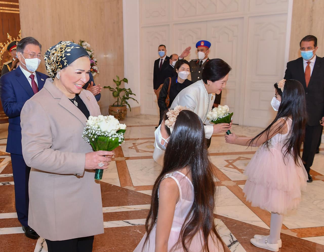 استقبل الرئيس عبدالفتاح السيسي، والسيدة قرينته، اليوم بقصر الاتحادية، الرئيس موون جاي إن، رئيس جمهورية كوريا الجنوبية، والسيدة قرينته، حيث تم إجراء مراسم الاستقبال الرسمي، وعزف السلامين الوطنيين، واستعراض حرس الشرف.