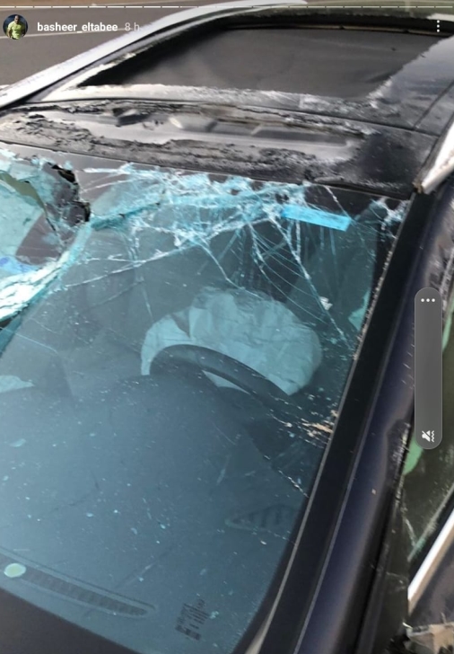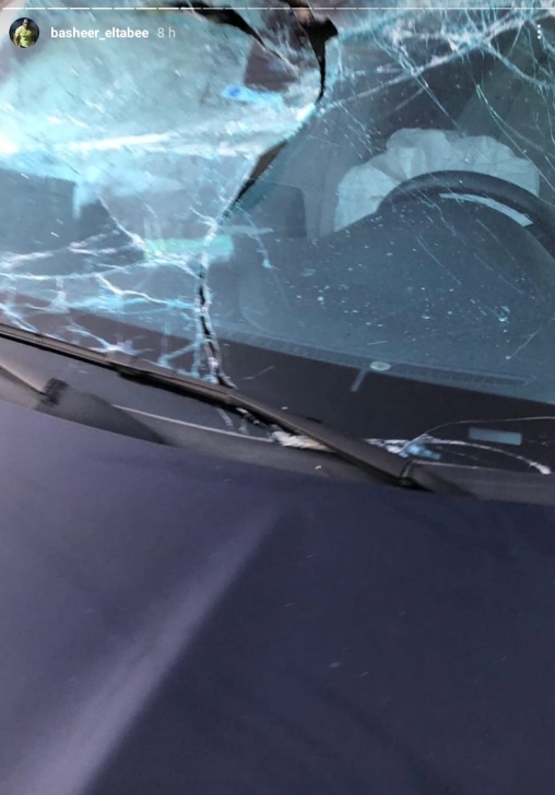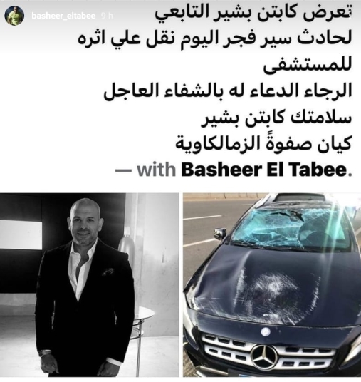 ونشر بشير التابعى عبر حسابه على موقع "إنستجرام"، مجموعة صور وفيديوهات لما خلفه حادث السير من أضرار على السيارة التي كان يستقلها.