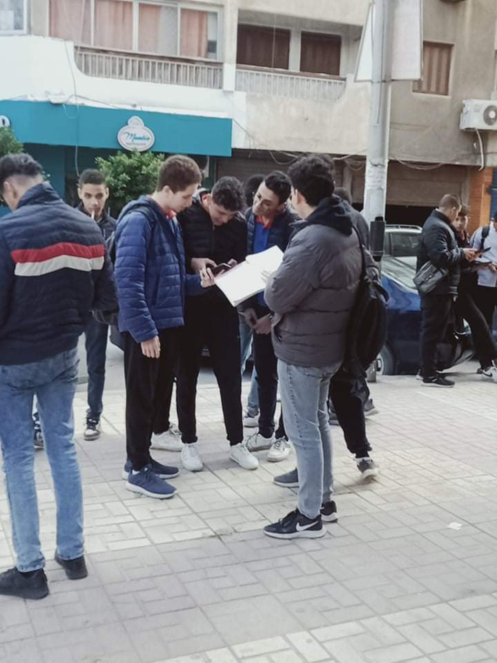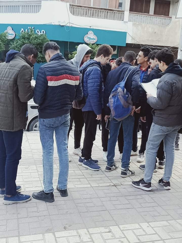 وحرص الطلاب على المراجعة النهائية قبل دخول اللجان وسط تواجد أولياء الأمور والتجمع أمام بوابات المدرسة.