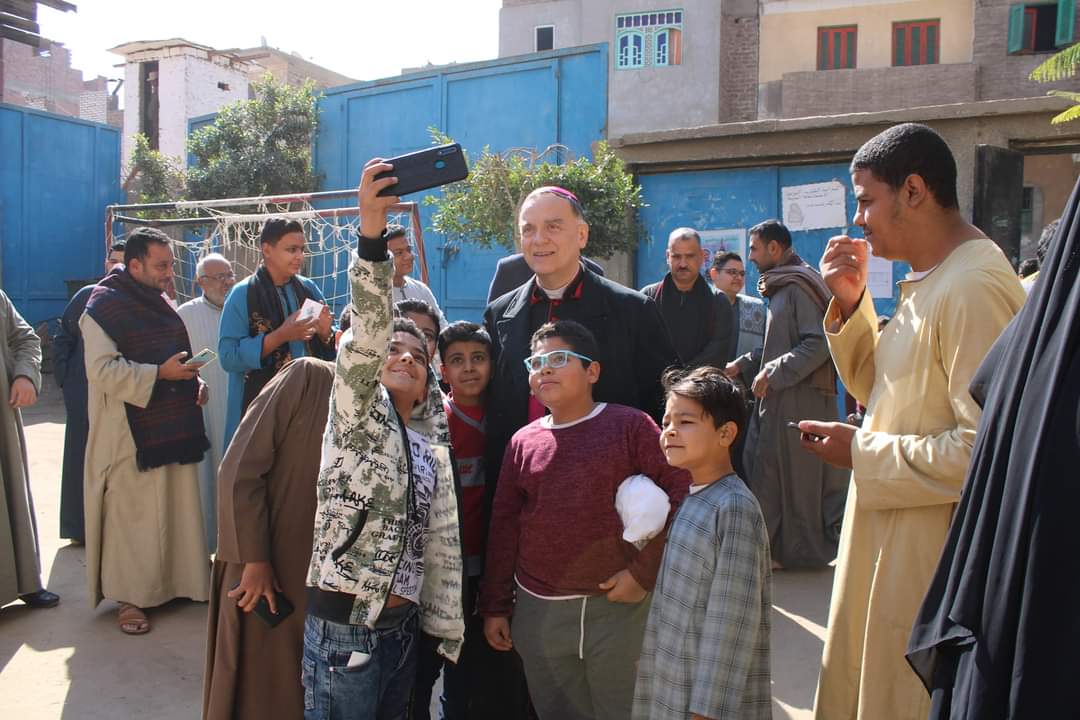 أطفال قرية حجازة بقنا يلتقطون السيلفي مع سفير الفاتيكان| صور