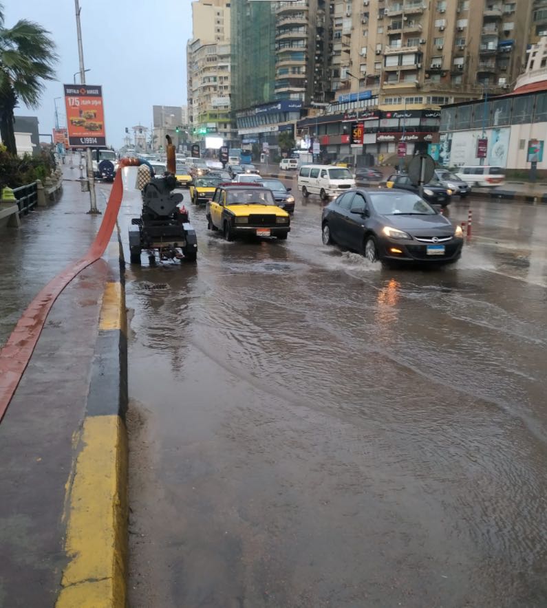 رفع تراكمات مياه الأمطار من شوارع وميادين الإسكندرية | صور