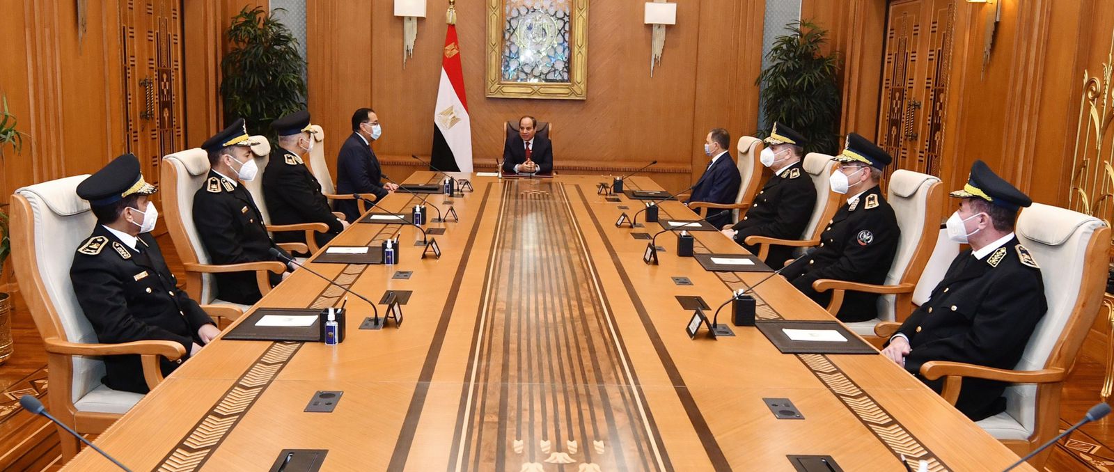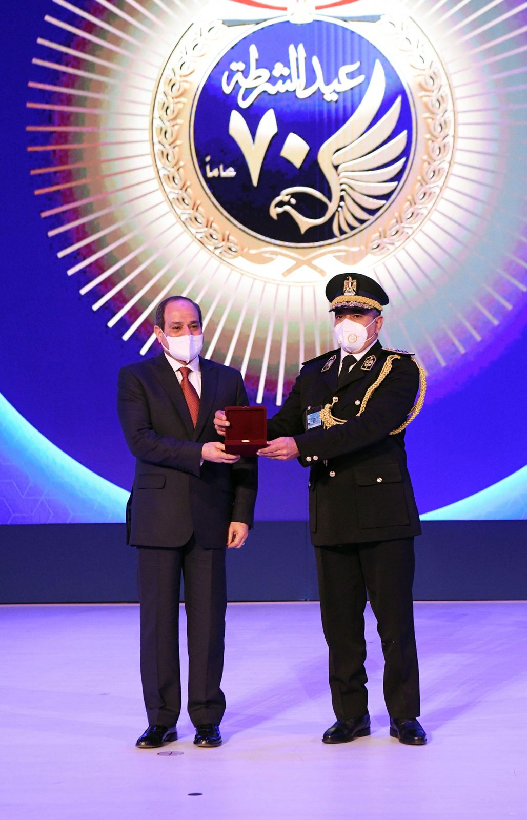 واضاف: أن الغاية الأسمى للدولة، هي المحافظة على بقائها، وحفظ الأمن والأمان لمواطنيها وهذا لن يتأتى، دون وجود جهاز شرطة وطني، واع ومدرك لطبيعة مهمته جيدًا ولعل ما يقوم به أبناؤكم اليوم من رجال الشرطة، من حفظ أمن واستقرار الوطن، ومحاربة الإرهاب البغيض لهو خير دليل على أن معين هذه الأمة، لا ينضب أبدًا وأرضـها الطيبة، تفيــــض دائـــمًا بالخير وتنجب رجالًا، يدركون جيـدًا، قيمــة الانتماء لهــذا الوطن وإنني من موقع المسئولية، أثمن دورهم الوطني جنبًا إلى جنب، مع أشقائهم من رجال القوات المسلحة البواسل والذين يمثلون معًا، الحصن المنيع، لحماية الوطن من كل شر تحية لهم جميعًا، على بطولاتهم وتضحياتهم والتي لولاها، ما كان لمصر أن تسير على طريق التنميـة الشـاملة، التي تنشــدها لشــعـبـها وتحية أيضًا، مملوءة بأسمى آيات التقدير والاعتزاز، إلى أرواح الشهداء تلك الشموع المضيئة، التي اختارت الخلود في السماء، على البقاء في الأرض وإلى أسرهم، التي عانت وتحملت فراقهم، من أجل الهدف الأعظم وهو بقاء مصر مرفوعة الرأس ولكي تبقى مصر هكذا، لابد أن نستحضر الروح التي بثها فينا، أبناء الوطن الشرفاء ونحن نواجه المحـــــن والأزمات التي تعتـرض طريقنـا ومن هذه الأزمات، تأتى جائحة فيروس "كورونا"، التي تجتاح العالم كله وما من مناسبة نلتقي فيها، إلا وأن أكرر شكري باسم المصريين جميعًا إلى أبنائكم من الأطقم الطبية على ما يقدمونه من تضحية، في مواجهة هذا الوباء، للحفاظ على صحة المصريين.