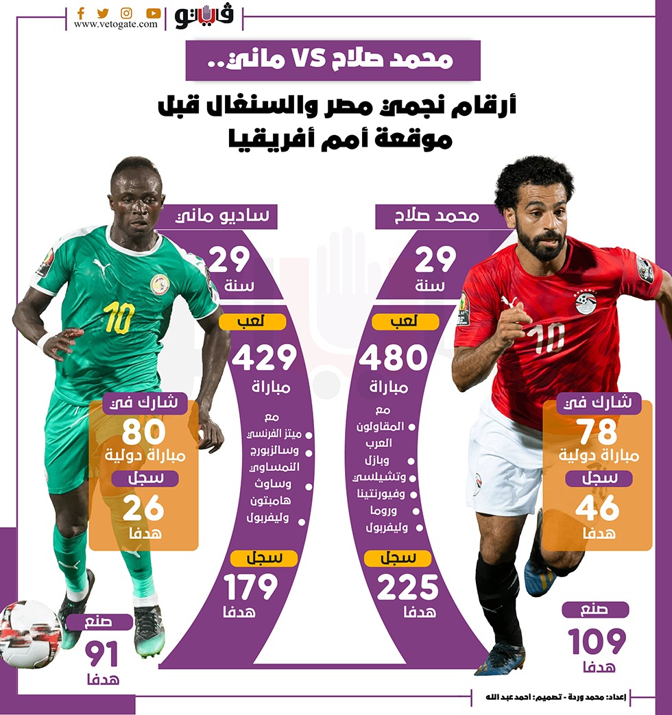 محمد صلاح VS ماني.. أرقام نجمي مصر والسنغال قبل موقعة أمم أفريقيا | انفوجراف الإثنين 24/يناير/2022 - 12:34 م 1/24/2022 12:34:03 PM محمد صلاح وساديو ماني محمد وردة شارك طباعة 18 حجم الخط شارك طباعة كاس الأمم الإفريقية منتخب مصر السنغال محمد صلاح ساديو ماني