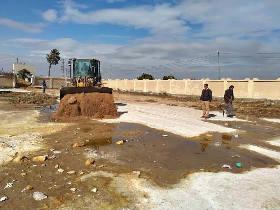 ردم برك المياه الجوفية داخل سور المعهد الديني بالتل الكبير في الإسماعيلية | صور