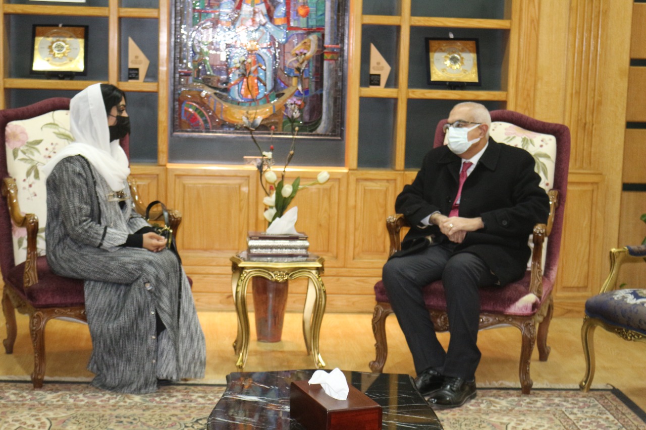 استقبل الدكتور أشرف عبد الباسط رئيس جامعة المنصورة وفد ملحقية التعليم وعلوم التكنولوجيا بسفارة دولة الامارات بالقاهرة برئاسة إيمان الحوسني الملحق الفني للملحقية.