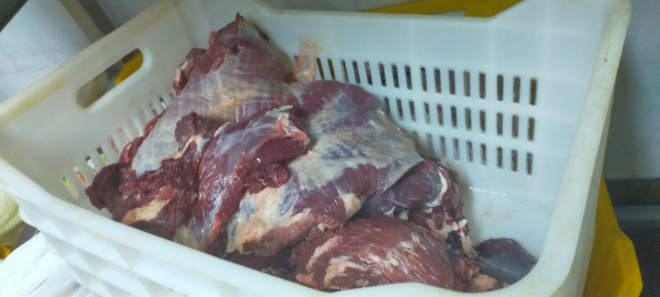 وتم ضبط المدير المسئول عن محل جزارة لحيازته 100 كيلو جرام لحوم بلدية مذبوحة خارج المجازر الحكومية وتم إتخاذ الإجراءات القانونية وجارى العرض على النيابة العامة.