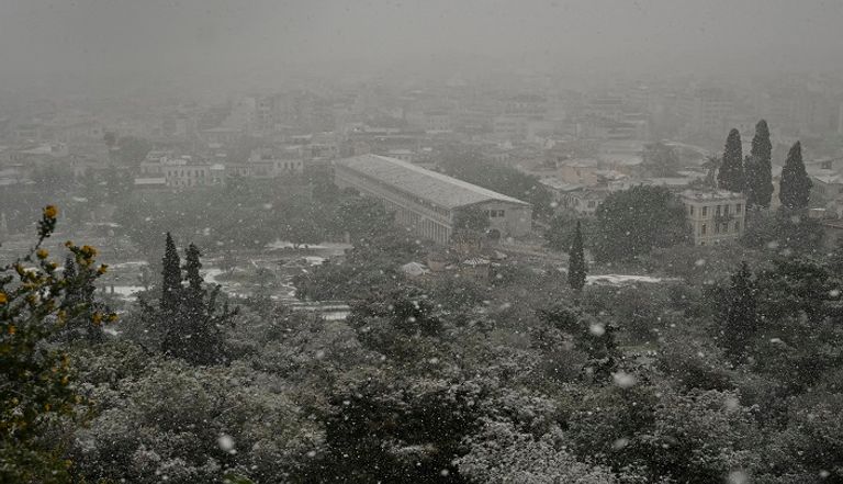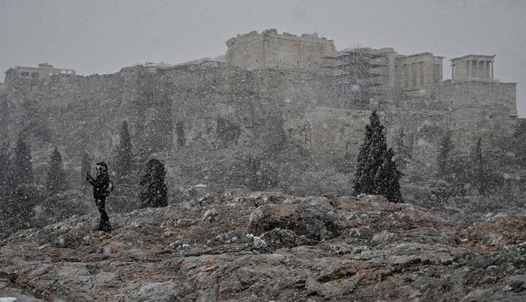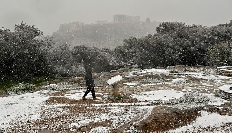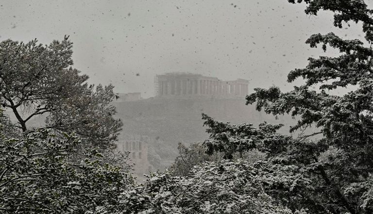 وتساقطت الثلوج للمرة الأولى هذا العام في وسط أثينا، ما أدى إلى إقفال البرلمان اليوناني والمدارس.