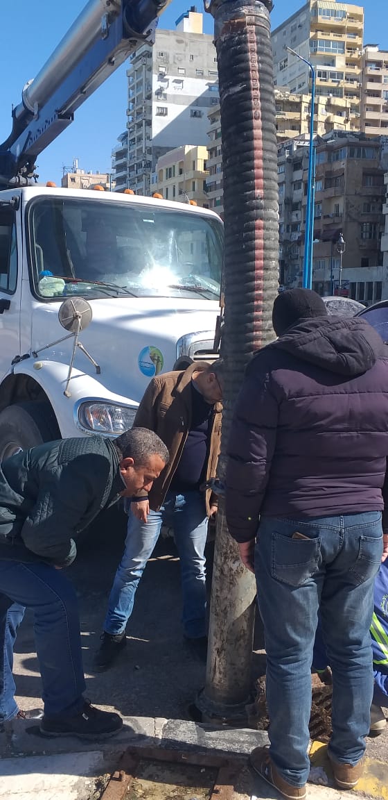 تطهير الشنايش والمطابق فى شوارع الإسكندرية استعدادا نوة الكرم