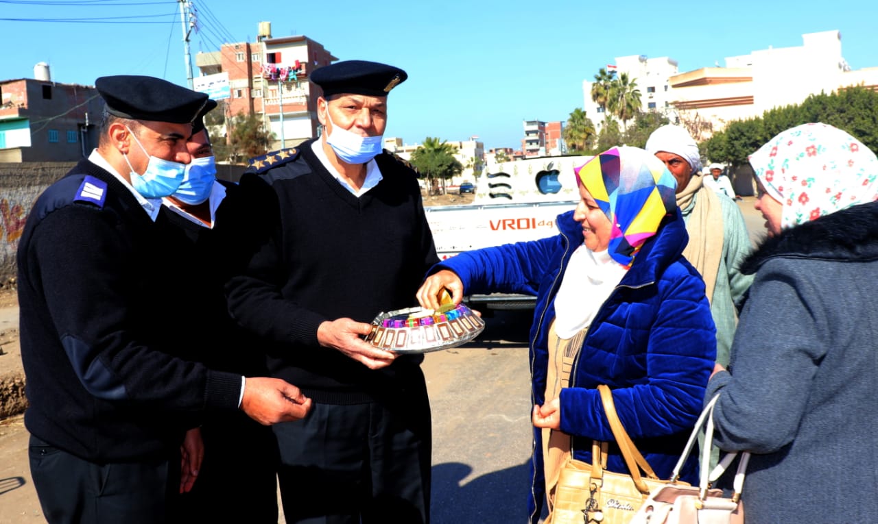 احتفالا بعيد الشرطة.. مركز شرطة بني عبيد يوزيع شوكولاتة على المواطنين بالدقهلية| صور
