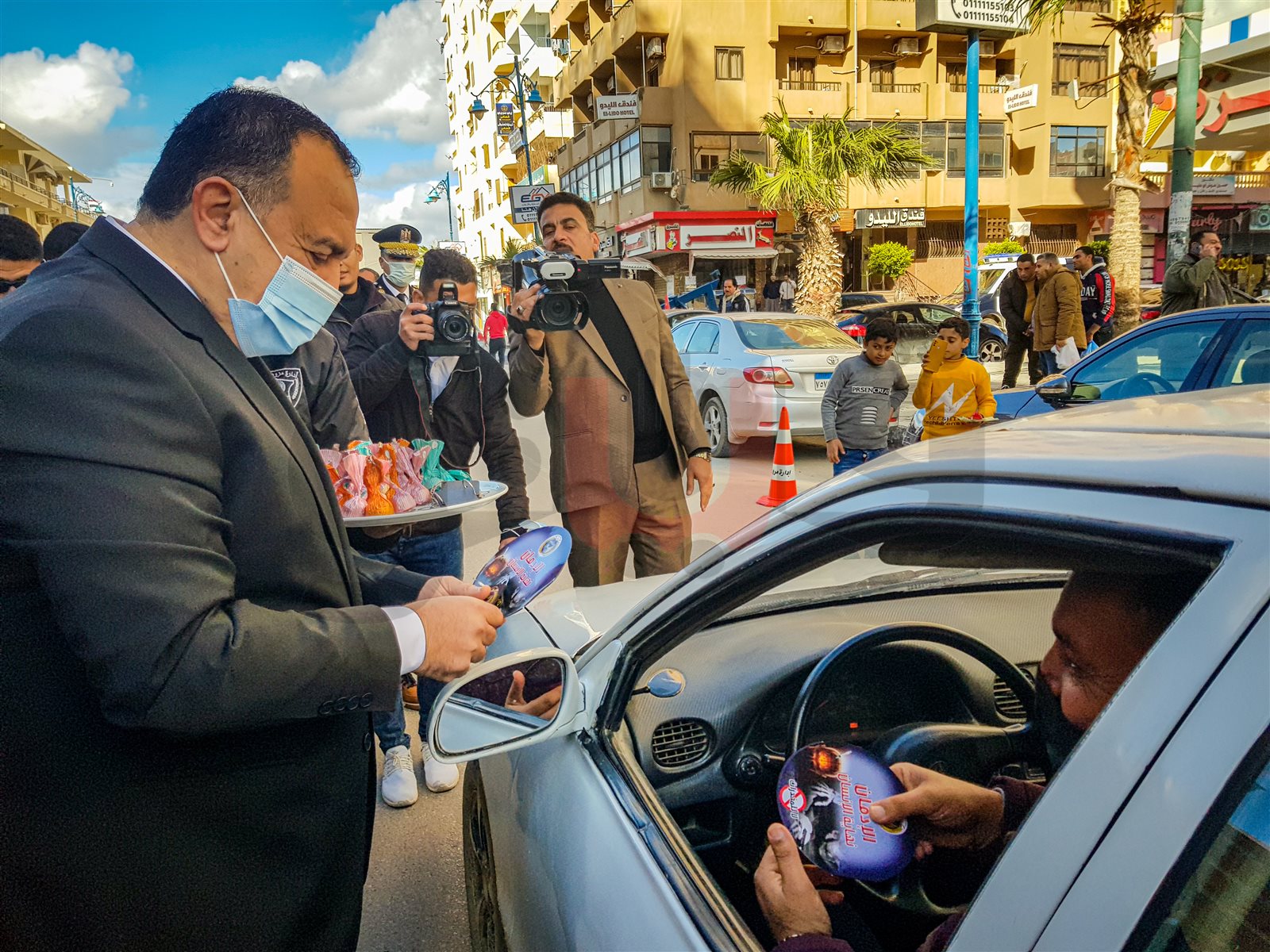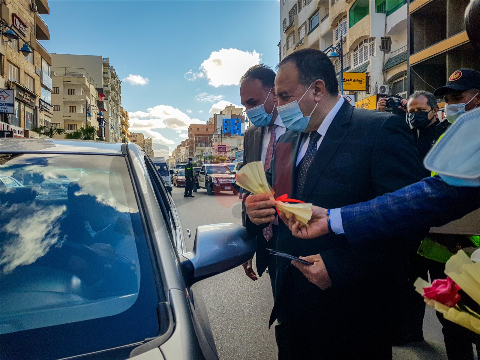 أمن مطروح يوزع الورود على المواطنين احتفالا بعيد الشرطة |صور