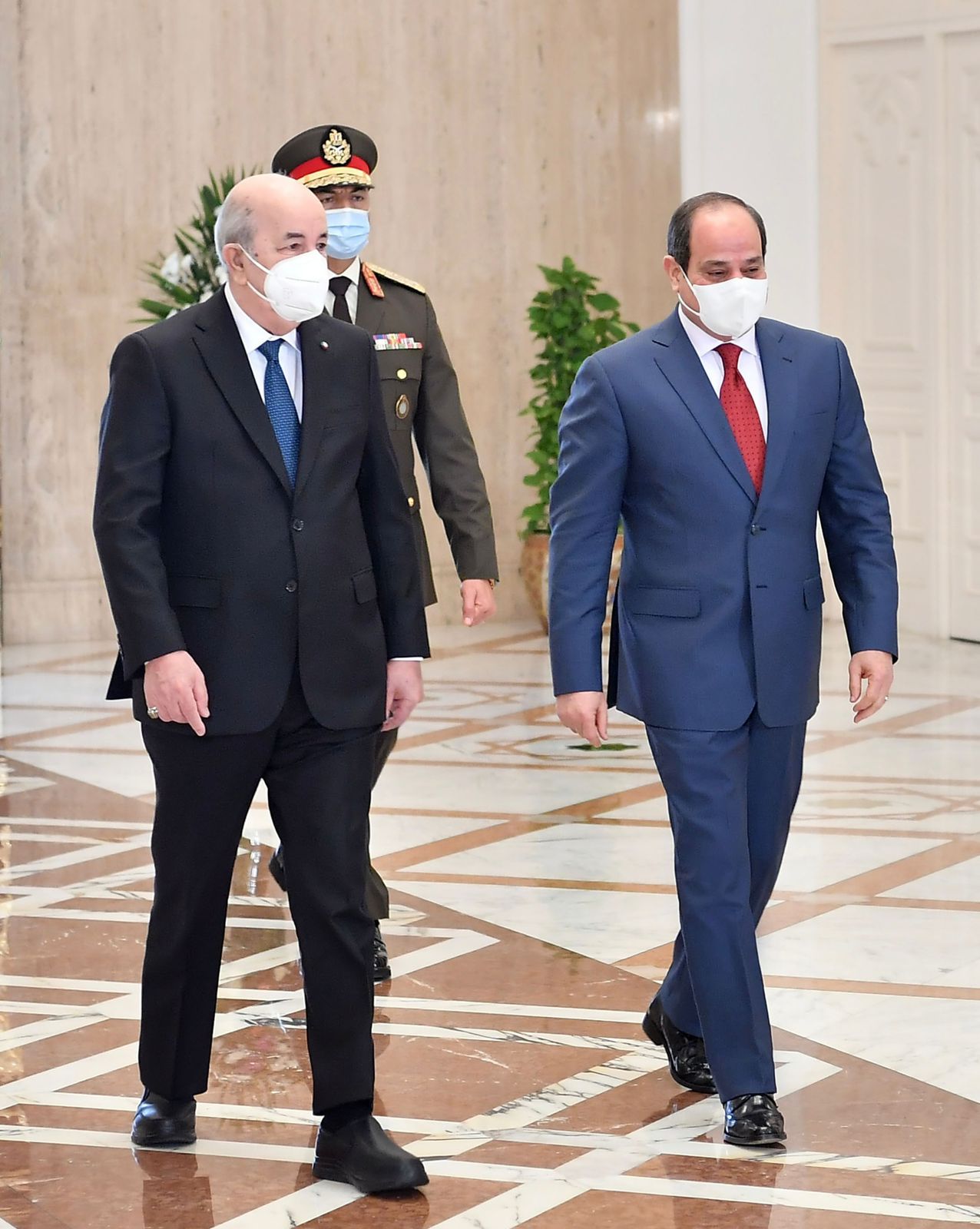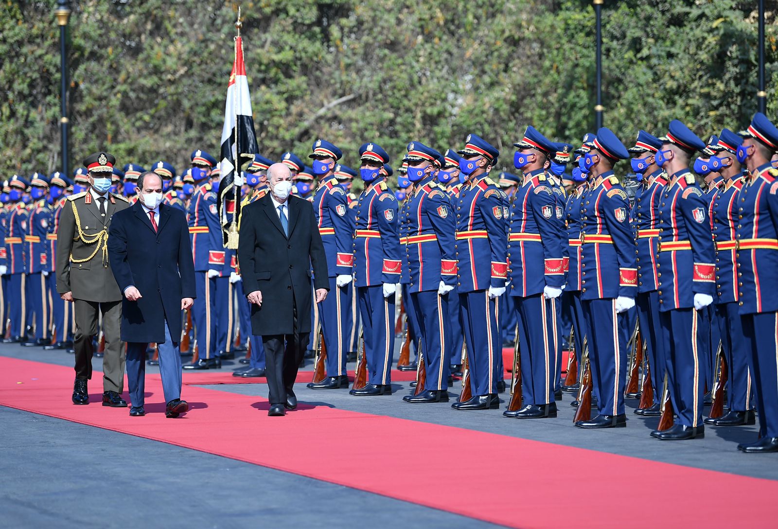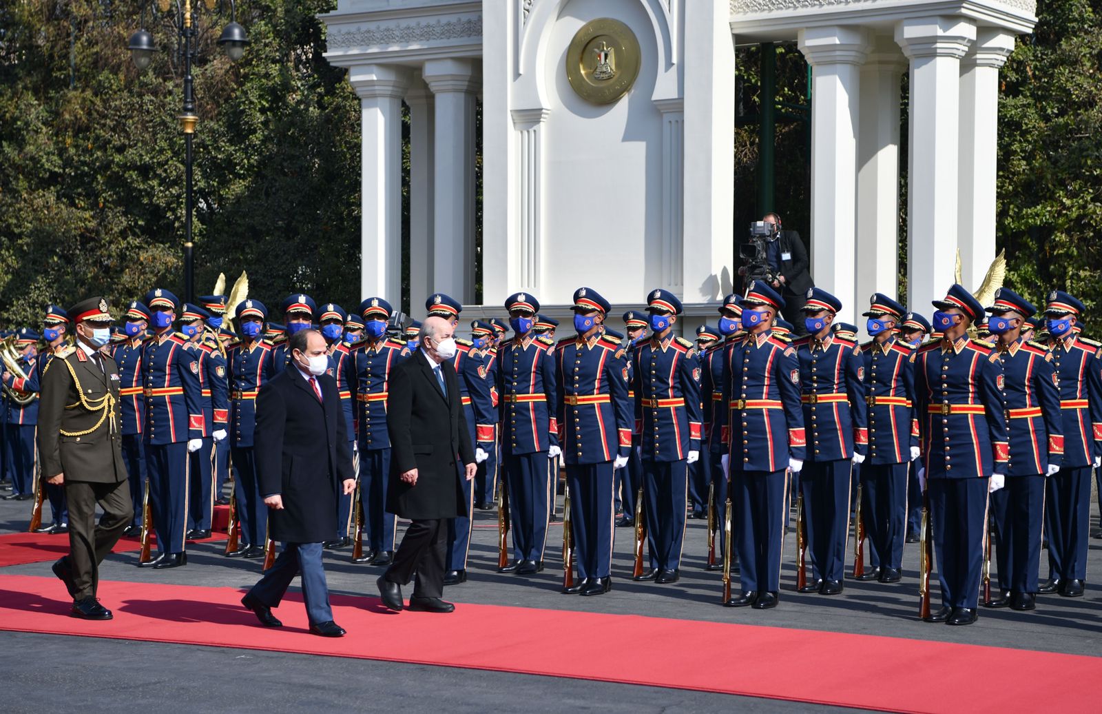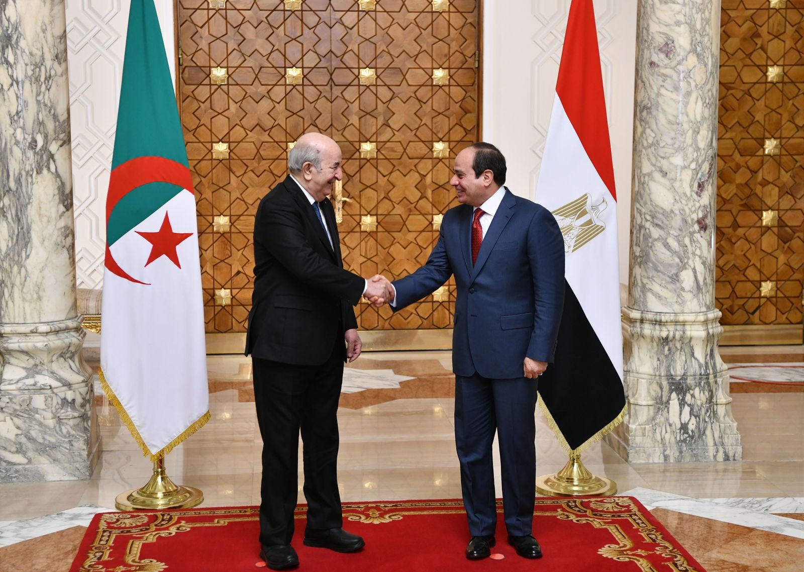 استقبل الرئيس عبد الفتاح السيسي اليوم بقصر الاتحادية الرئيس عبد المجيد تبون، رئيس الجمهورية الجزائرية، حيث أجريت مراسم الاستقبال الرسمي، وتم عزف السلامين الوطنيين واستعراض حرس الشرف.