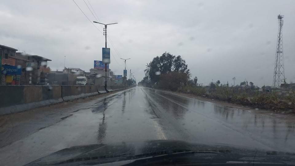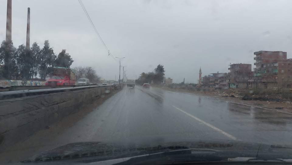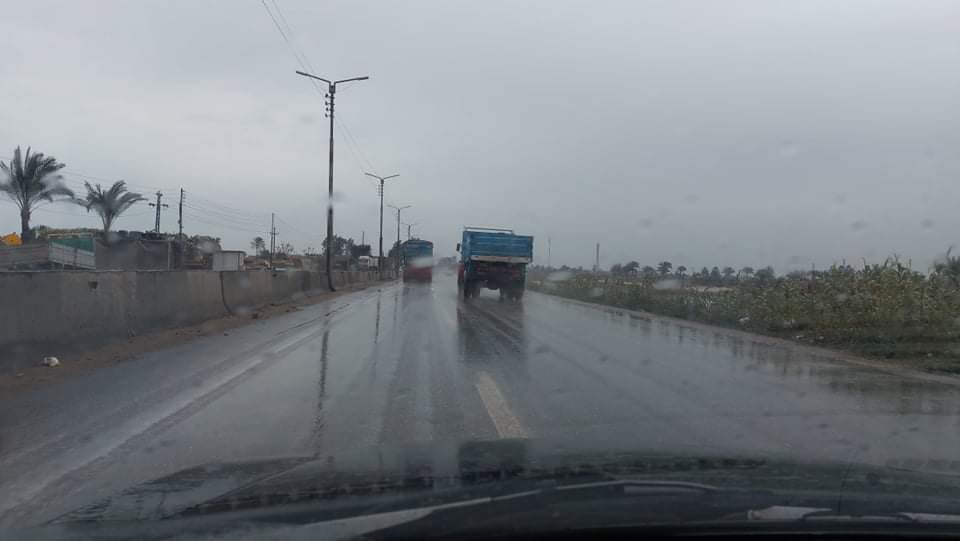 ورصدت “ فيتو” لحظة تساقط الأمطار علي الطريق السريع في ميت غمر.