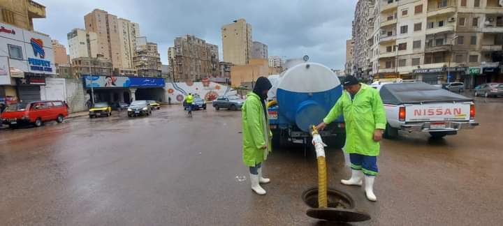 شهدت محافظة الإسكندرية اليوم الأربعاء، انتشار العاملين بهيئة الصرف الصحي لكسح مياة الأمطار من الشوارع والطرقات وكورنيش البحر.