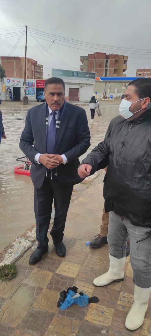 محافظ مطروح يتابع إزالة تراكمات مياه الأمطار من الشوارع | صور