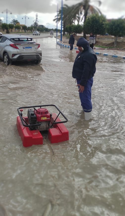 وواصلت جهود رفع تجمعات مياه الأمطار بالشوارع والميادين العامة والأحياء والعزب وعلى الطريق الدولي الساحلي لتيسير حركة المواصلات والمواطنين، وذلك من خلال معدات وسيارات مجالس المدن والحماية المدنية وشركة مياه الشرب والصرف الصحي وكافة الأجهزة التنفيذية المعنية.