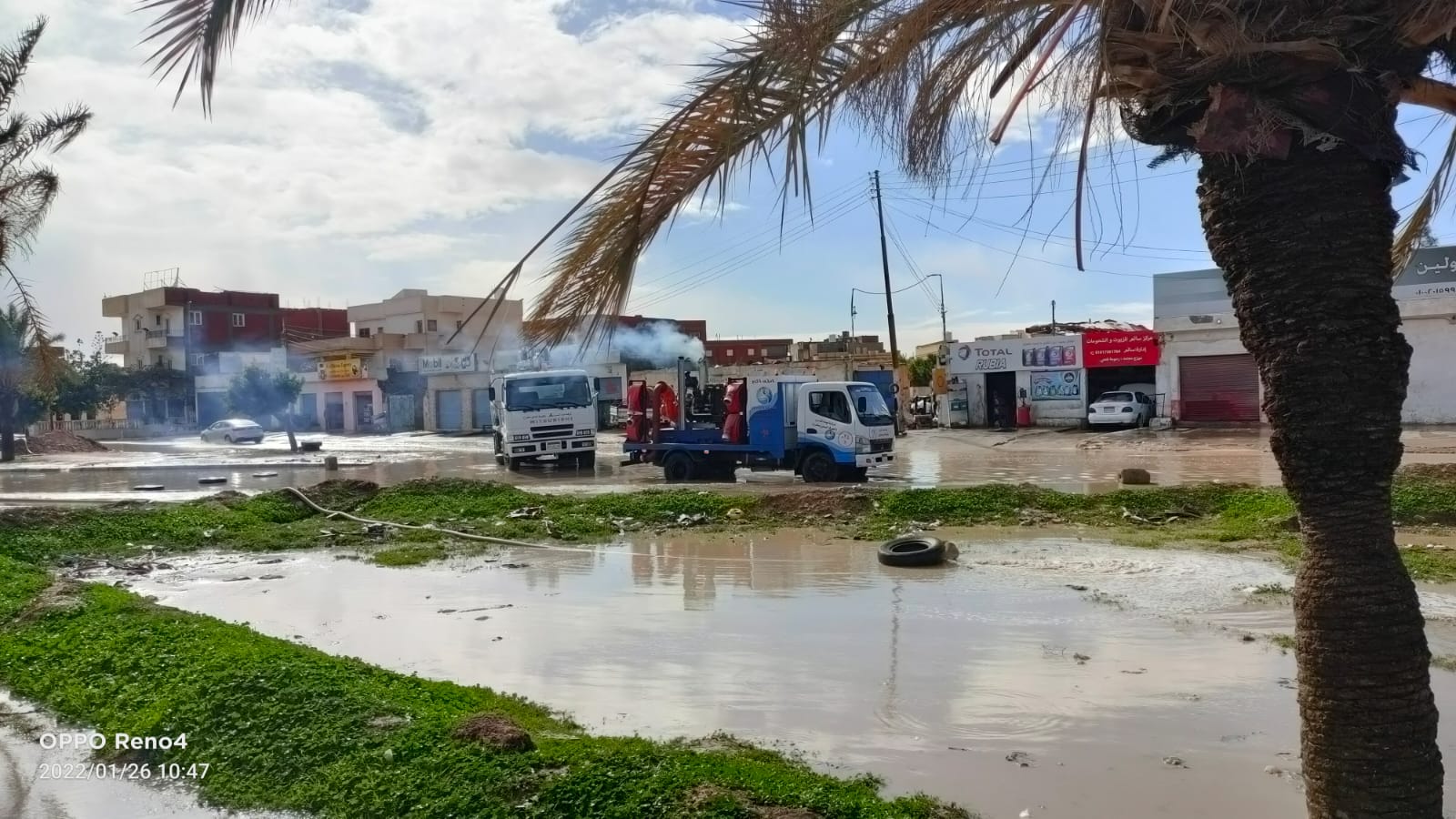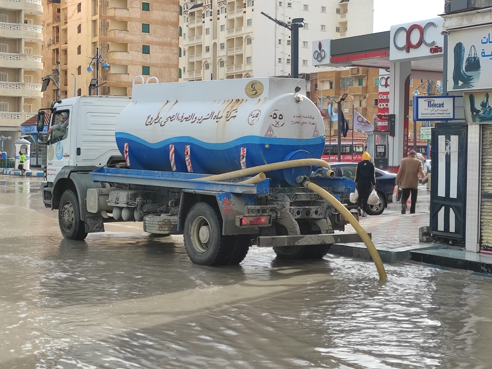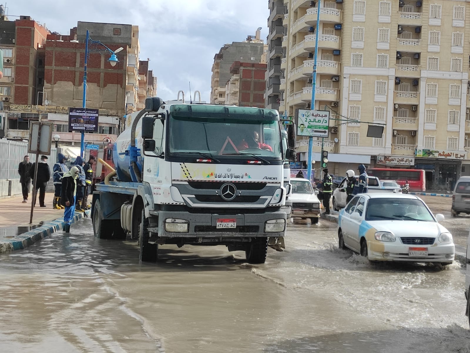 وواصلت جهود رفع تجمعات مياه الأمطار بالشوارع والميادين العامة والأحياء والعزب وعلى الطريق الدولي الساحلي لتيسير حركة المواصلات والمواطنين، وذلك من خلال معدات وسيارات مجالس المدن والحماية المدنية وشركة مياه الشرب والصرف الصحي وكافة الأجهزة التنفيذية المعنية.