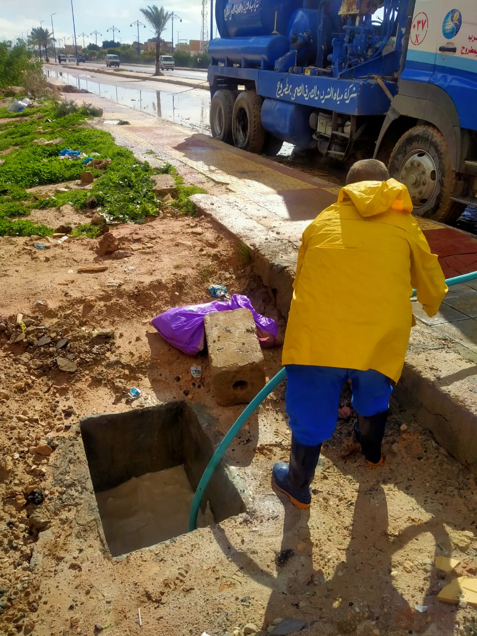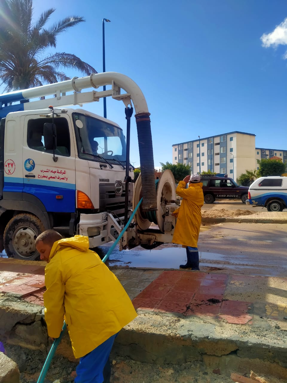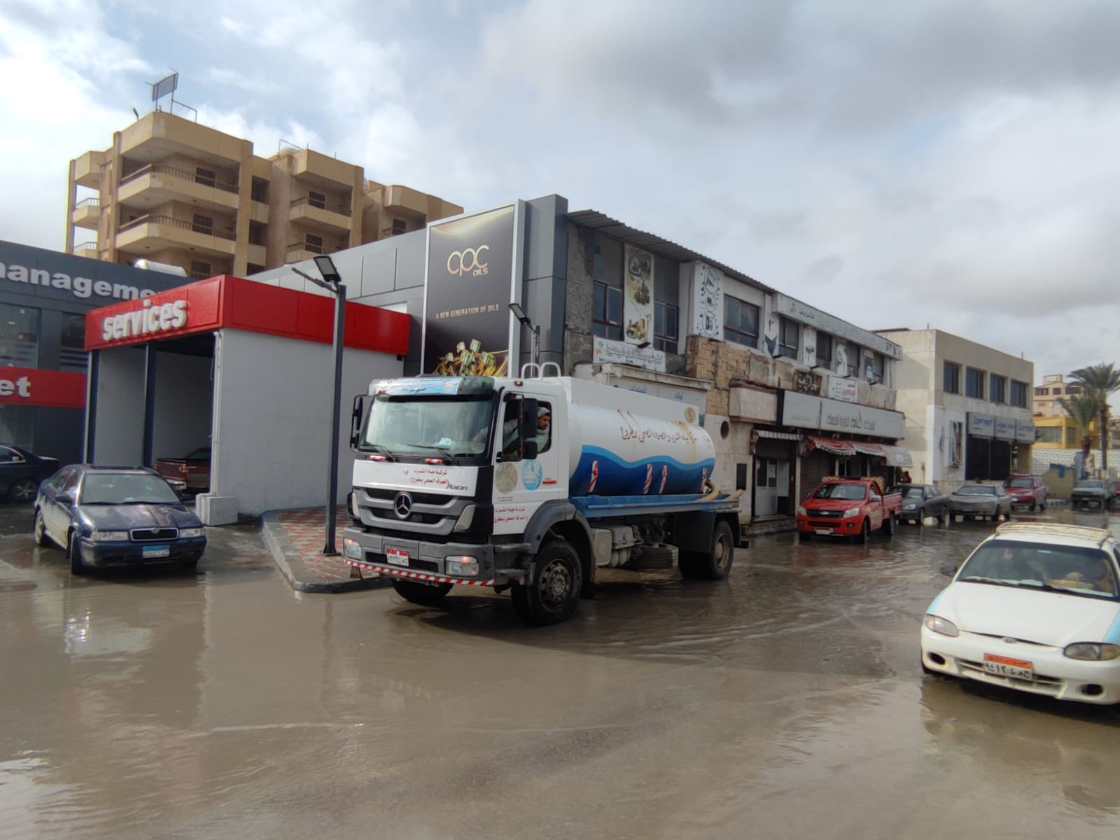 وتواجدت سيارات ومعدات شركة مياه الشرب والصرف الصحي بمطروح لرفع مياه الأمطار من الميادين والشوارع الرئيسية لضمان سير العملية المرورية بالشوارع.