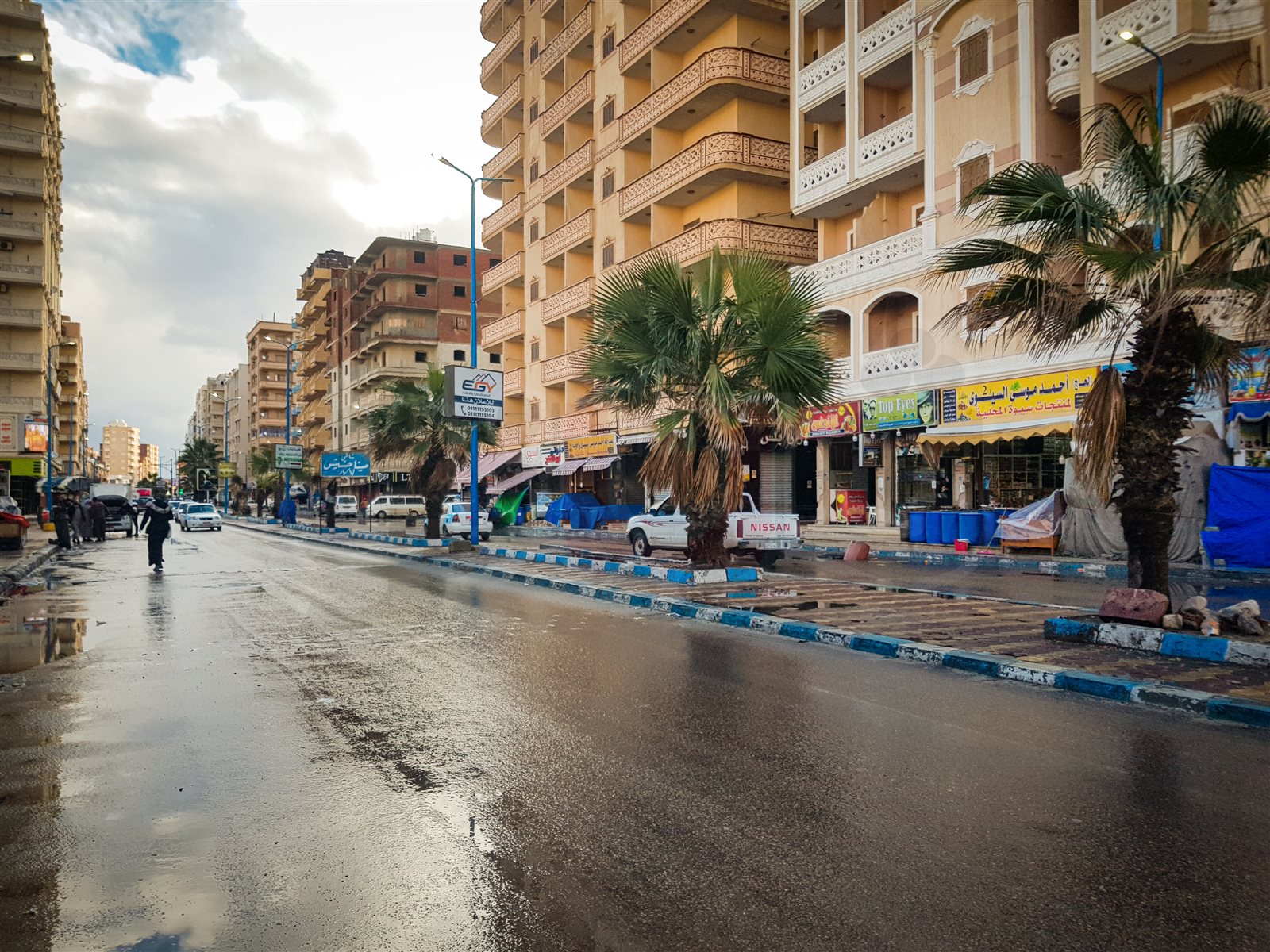 وواصلت جهود رفع تجمعات مياه الأمطار بالشوارع والميادين العامة والأحياء والعزب وعلى الطريق الدولي الساحلي لتيسير حركة المواصلات والمواطنين، وذلك من خلال معدات وسيارات مجالس المدن والحماية المدنية وشركة مياه الشرب والصرف الصحي وكافة الأجهزة التنفيذية المعنية.