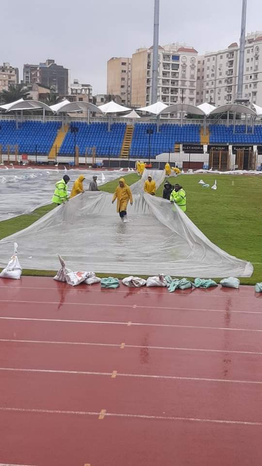 استاد الإسكندرية يغطي الملعب بـ"مشمع" | صور