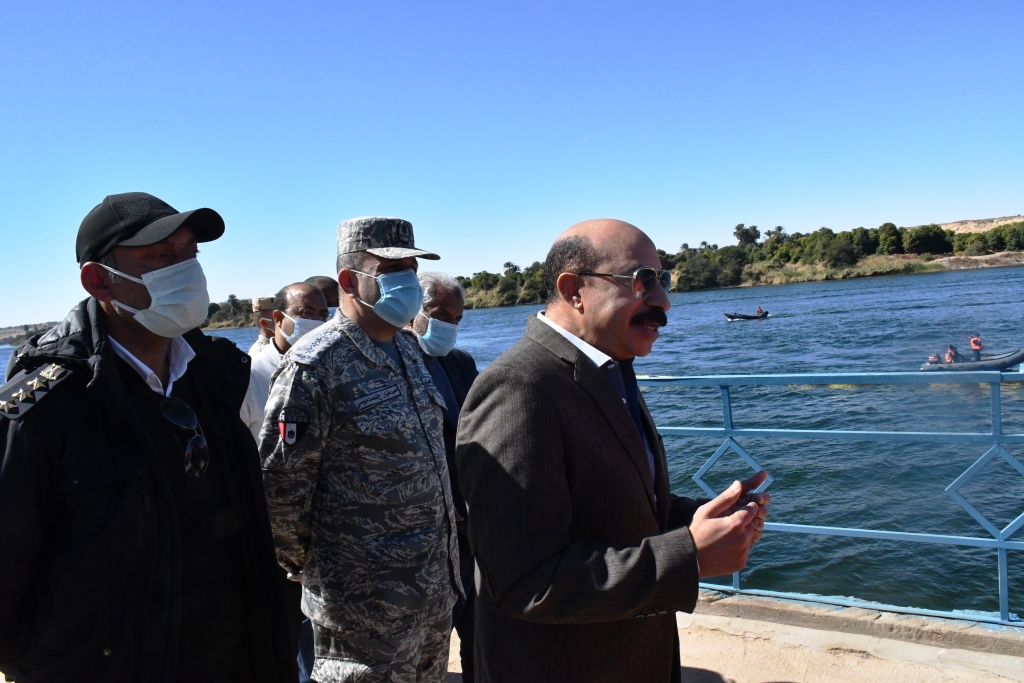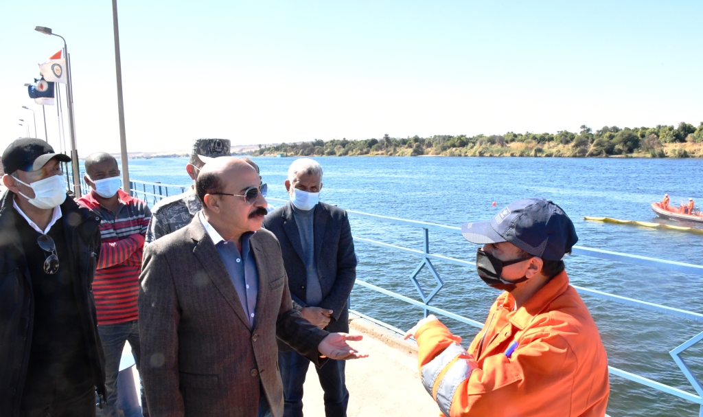 محافظ أسوان يحضر تجربة المحاكاة العملية لمكافحة تلوث بترولى نهري | صور